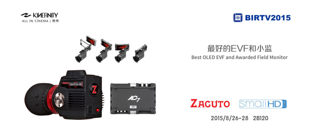 Kinefinity/卓曜 将于 2015.8.26~28号(周三到周五)参加在北京举行BIRTV展会。本次展会中,Kinefinity/卓曜 将展示真正的全流程解决方案:全新的KineMAX 6K摄影机、固件KineOS 4.0、和Assimilate一起发布软件SCRATCH V8.4。无论是Kine老用户,还是KineMAX 6K新用户以及对最新技术和设备感兴趣的人,都欢迎前来我们的展位体验全流程技术方案、上手新版摄影机和附件。
